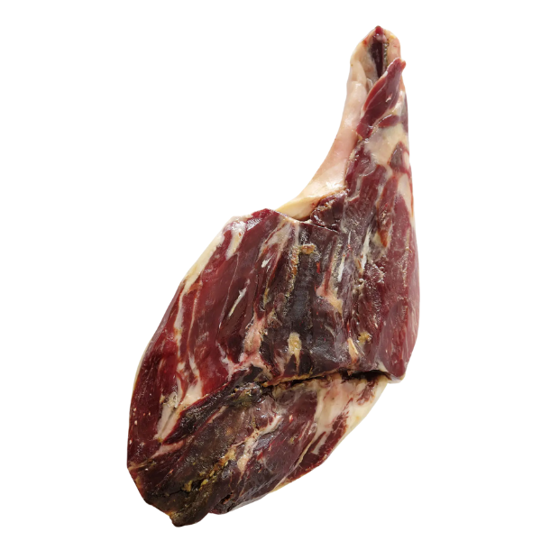 CompareAlentejo ham recognised with the Protected Designation of Origin (PDO), obtained from Certified Alentejo Black Pork Legs. Each ham contains an intense, cured and persistent aroma profile. Each unit is a perfect example of Alentejo Black Pork Ham, which undergoes a Natural Curing process. Each ham has a smoothness of fat and a marbled appearance with shiny ruby tones, this ham has a slightly salty and slightly acidic flavour.