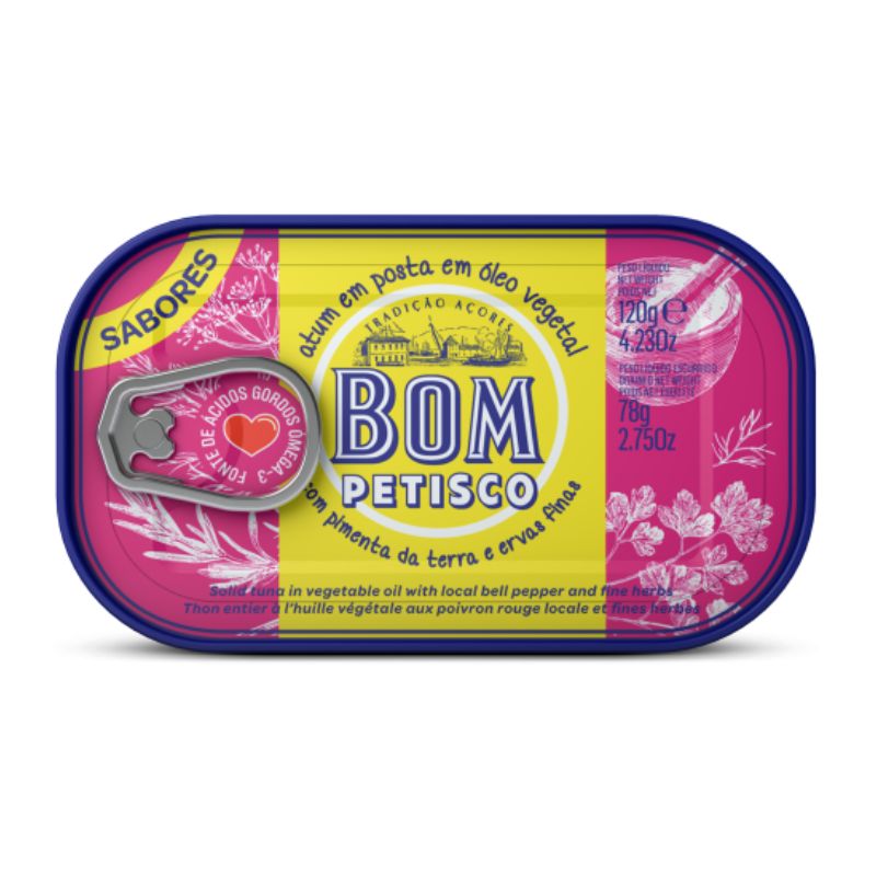 Atum com Pimenta e Ervas Finas Bom Petisco Lata 120g