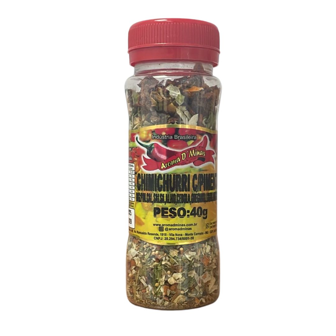 O Aroma D’Minas Chimichurri com Pimenta de 40g é um tempero clássico e saboroso, muito utilizado para dar um toque especial a carnes grelhadas, especialmente em churrascos. O chimichurri é uma mistura de ervas e especiarias como salsinha, alho, pimentão, orégano, entre outros, combinados com azeite e vinagre, criando um molho delicioso e aromático.