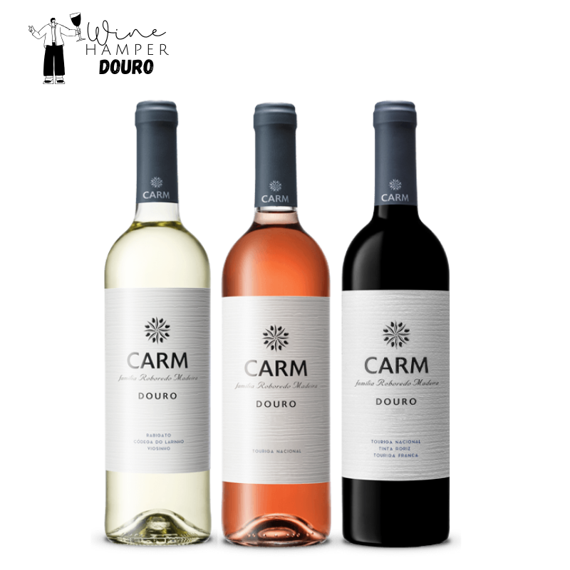 • Wine Hamper: 1 garrafa de CARM Reserva Branco, 1 garrafa de CARM Touriga Nacional Rosé e 1 garrafa de CARM Reserva Tinto