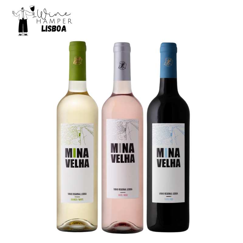 - Wine Hamper: 1 garrafa de Mina Velha Vinho Branco, 1 garrafa de Mina Velha Vinho Rosé e 1 garrafa de Mina Velha Vinho Tinto