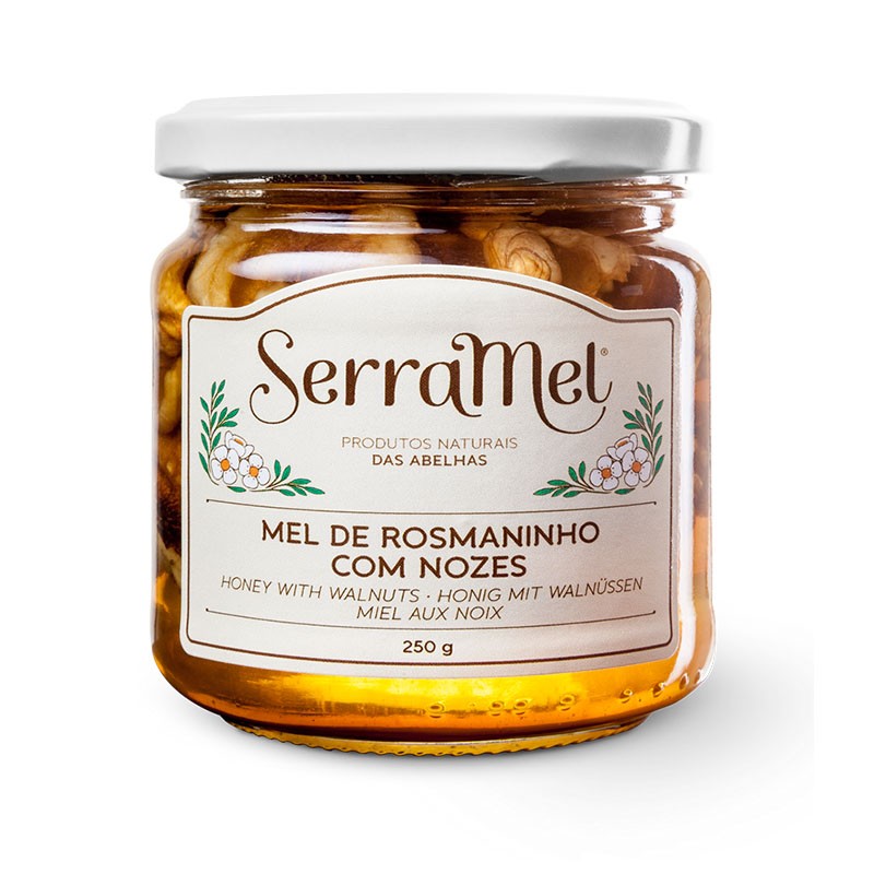 Produto natural de alta qualidade constituído por mel de Rosmaninho e noz. Nada mais. Tem uma consistência cremosa, sendo ideal para barrar.