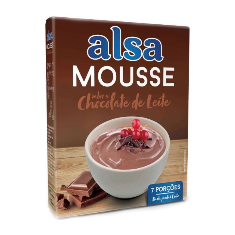 Preparado em pó para mousse com sabor a chocolate de leite.