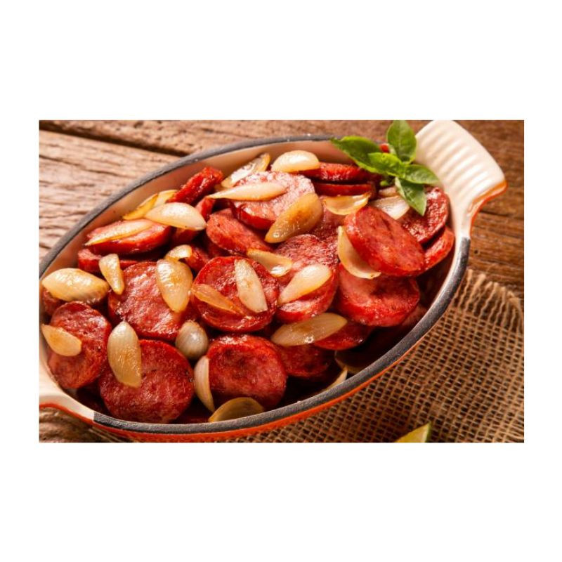 Excelente salsicha de churrasco elaborada a partir de uma seleção das carnes mais tenras e saborosas. Apresenta-se como uma excelente opção para complementar os seus grelhados e churrascos, dando ainda mais sabor aos seus pratos. É um produto muito versátil, podendo ser utilizado em entradas cortadas em fatias grossas ou como elemento de prato principal, onde poderá preparar refeições rápidas e saborosas.
