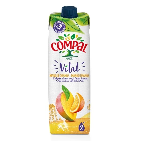 CompareSumo de fruta, sabor manga-laranja , com calorias reduzidas e adocado com Stevia, um ingredient 100% natural.